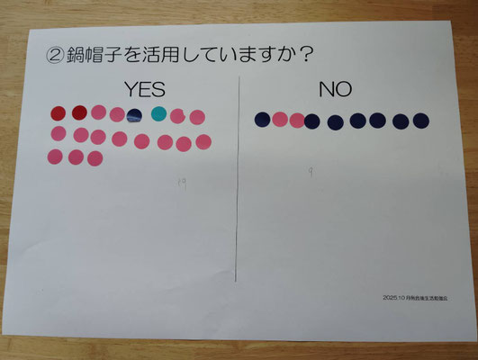 2 「鍋帽子を活用していますか?」YESが19名 NOが9名