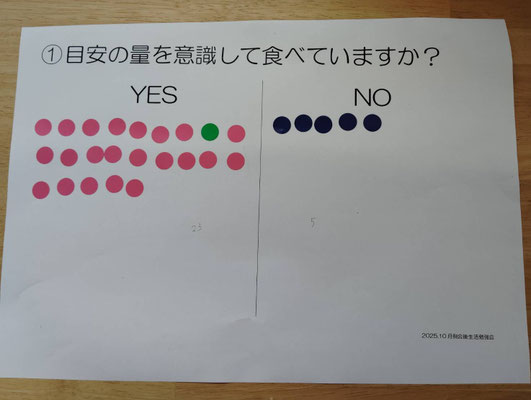 1 「目安の量を意識して食べていますか?」YESが23名 NOが5名